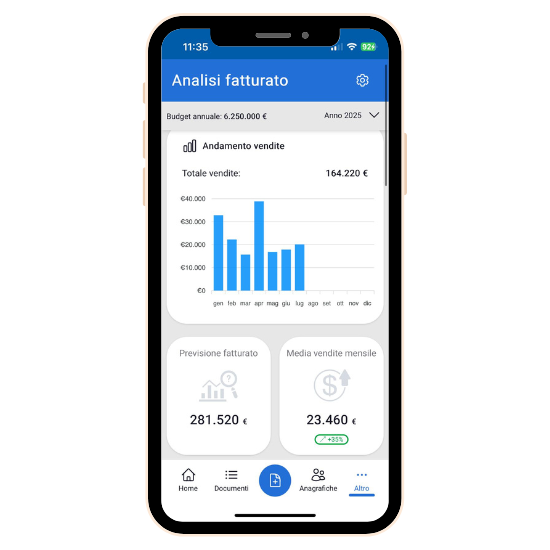 Puoi infatti creare, inviare e monitorare le fatture, gestire incassi e pagamenti, consultare in tempo reale i dati di business e accedere a previsioni e statistiche che ti aiutano a prendere decisioni più rapide e consapevoli.