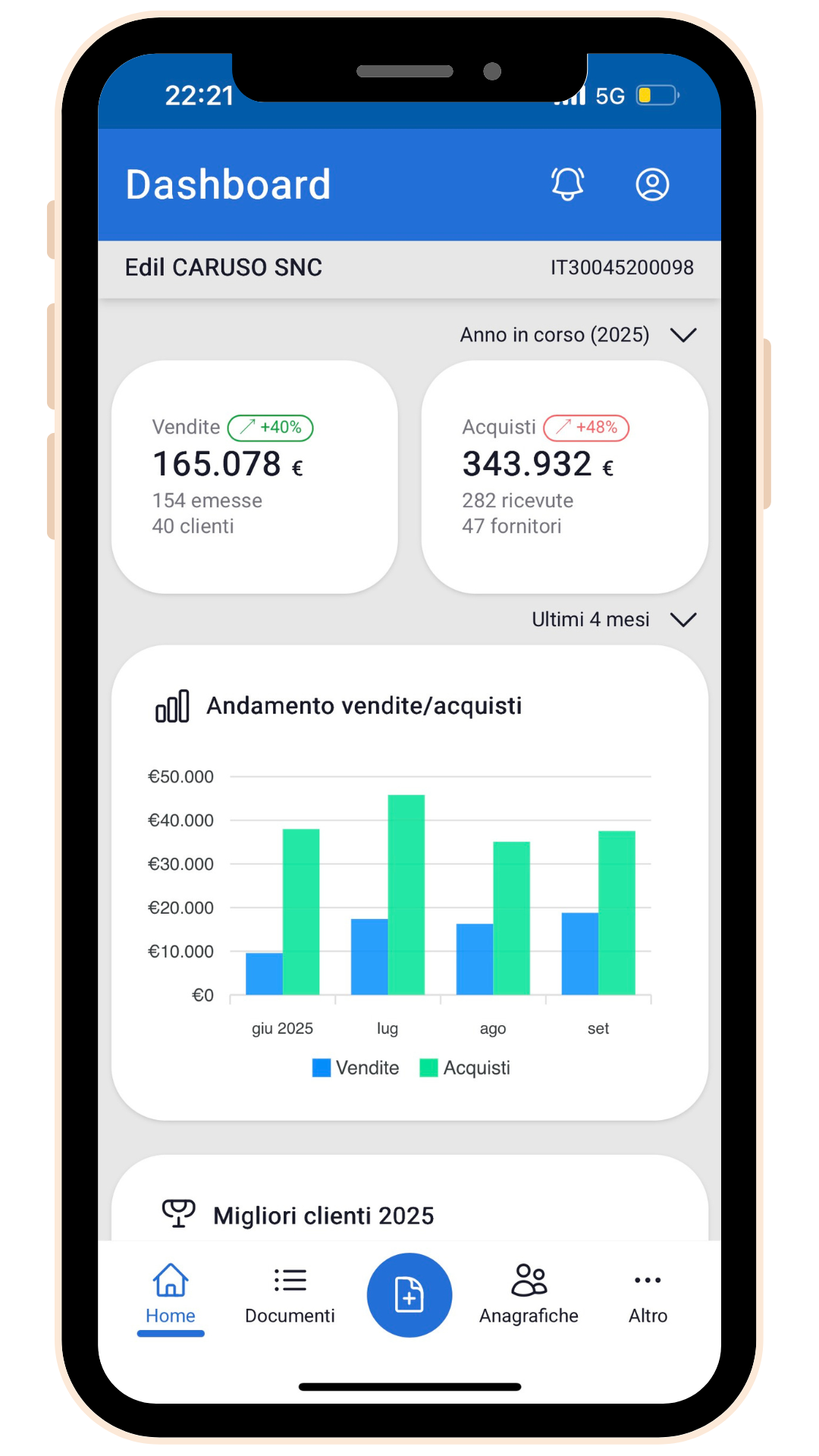 Gestisci l'invio e la ricezione di fatture elettroniche ovunque tu sia. Resta sempre aggiornato grazie a report e notifiche automatiche